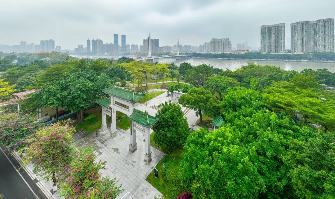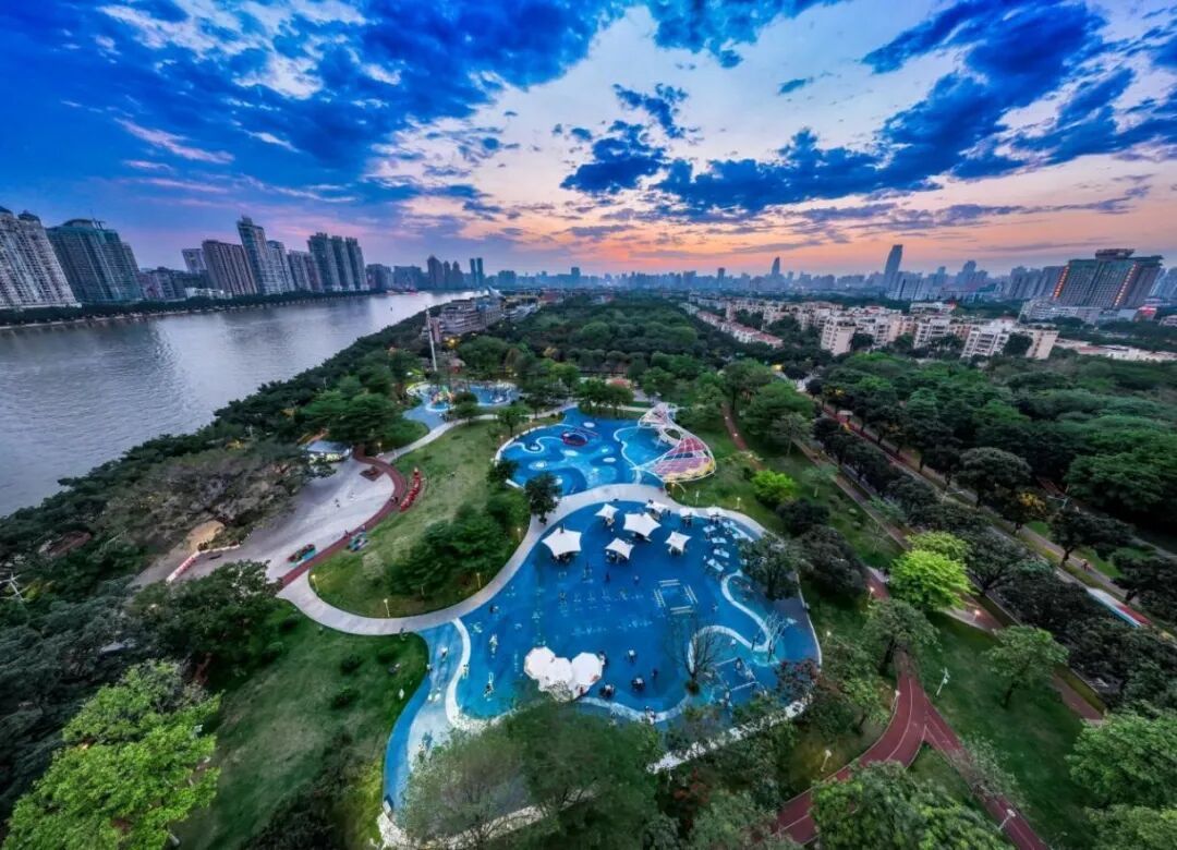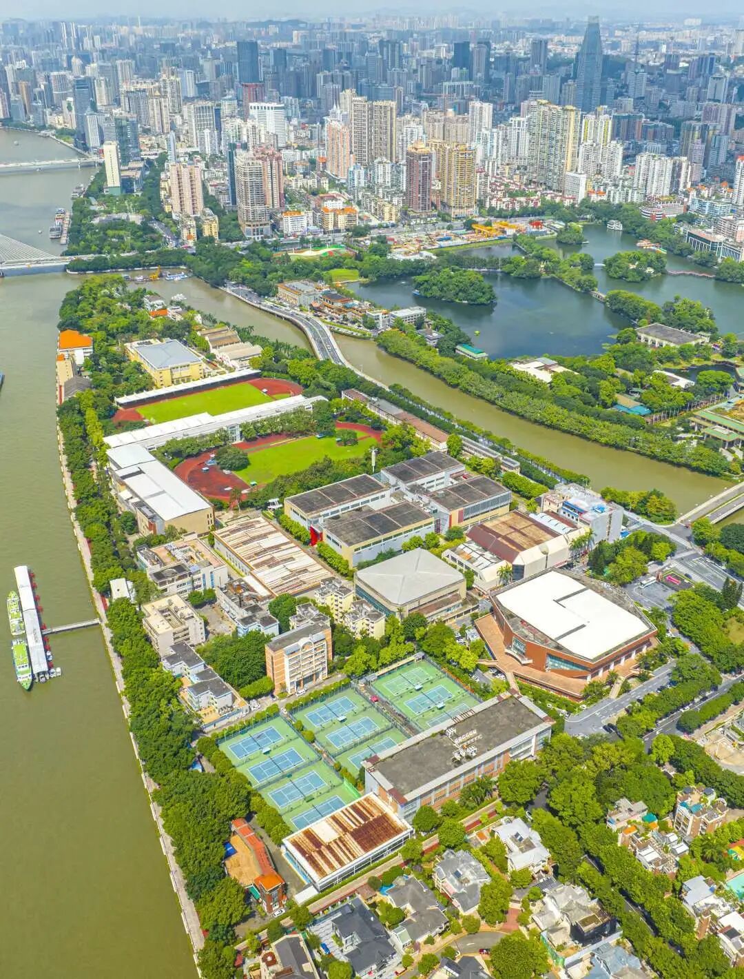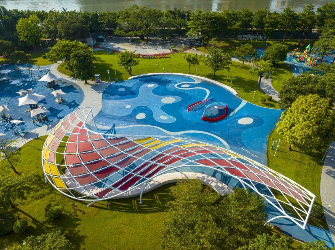 园内环形缓跑径串联江景与绿植,80%以上绿化覆盖率搭配自发电智能器材,实现运动与环保相融。二沙岛体育公园所在的二沙岛社区入选越秀区首批生态社区优秀案例。